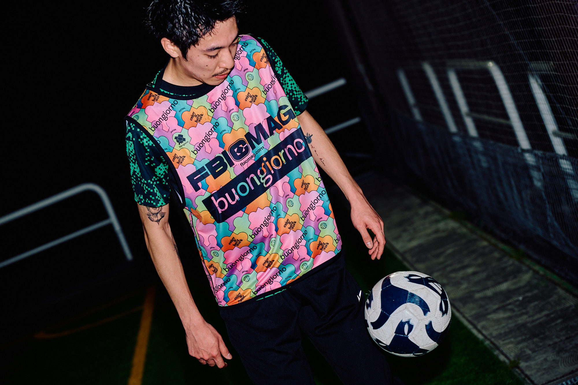 海外から来日したファッションモデルをはじめとする、多国籍な参加者がやって来ることも多く、プロアマ、男女、国籍、カテゴリーなど問わず多くのフットボールファミリーが集まるbuongiornoらしさのつまった、カラフルでインパクトのあるデザインは、フットボールの可能性や考え方、捉え方、解釈が無限である、というFBI©MAGらしいメッセージも織り込まれています。
