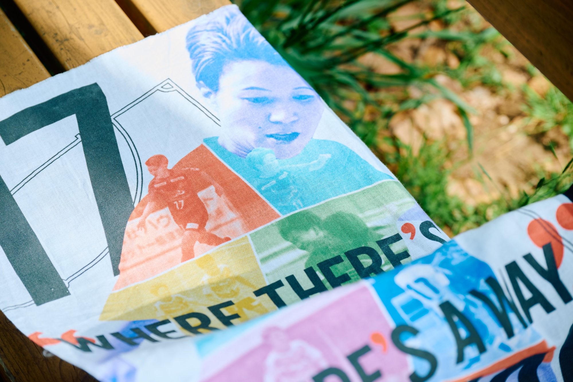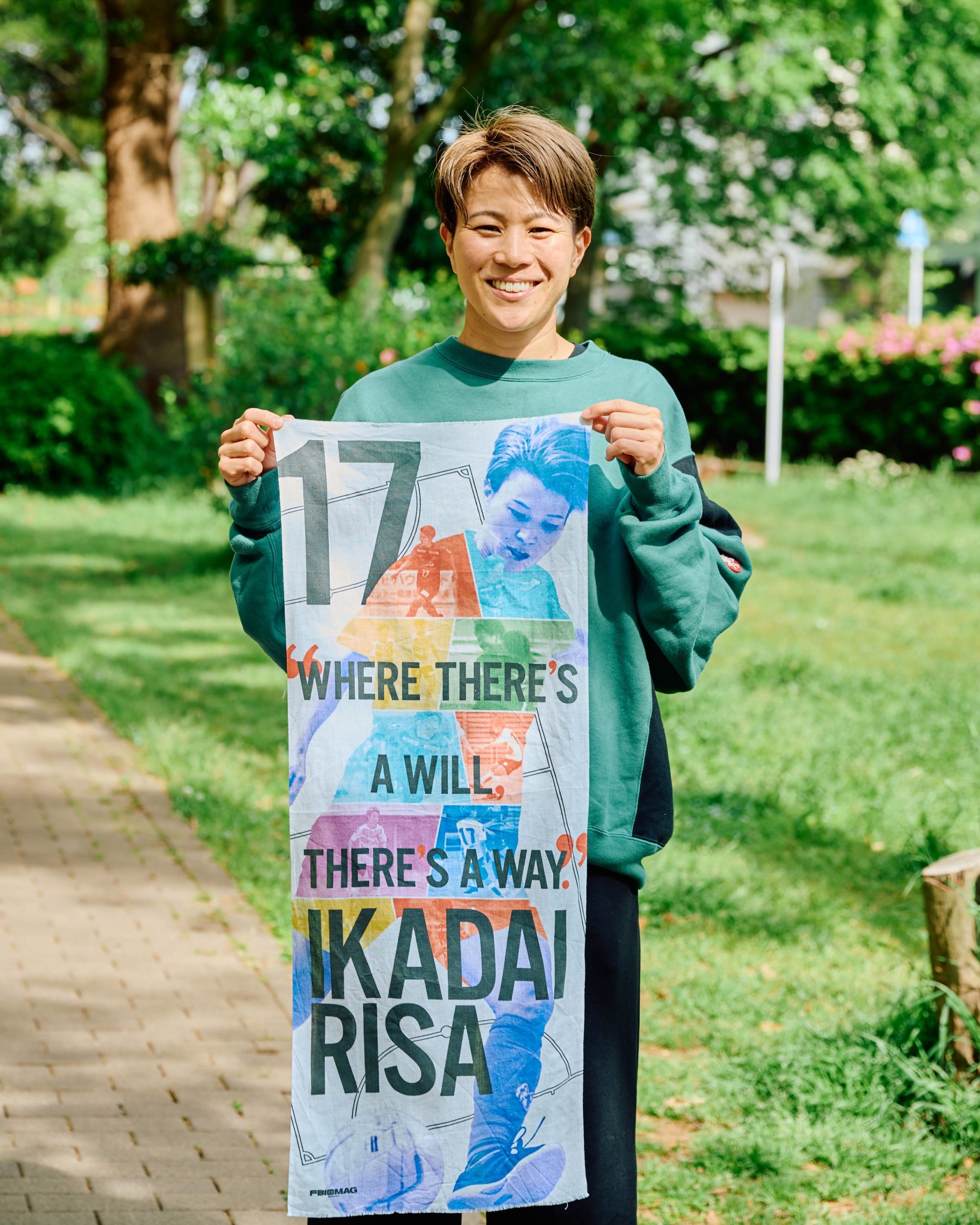 初めて日本女子代表として、世界大会に挑戦するイメージを、彼女のフットボール人生を軌跡にしたカラフルなデザインで表現し、日本の伝統的アイテムである「てぬぐい」に落とし込みました。